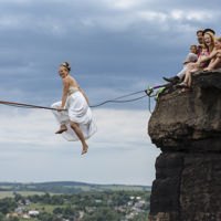 With a degree in architecture and construction from CTU, she’s our own Ing. Arch. on the slackline. Ask her how slacklining captivated her, and you’ll get a romantic story. It all started with a slackliner she fell in love with, and now she’s devoted to both of them. "I still love them both to this day," she says.