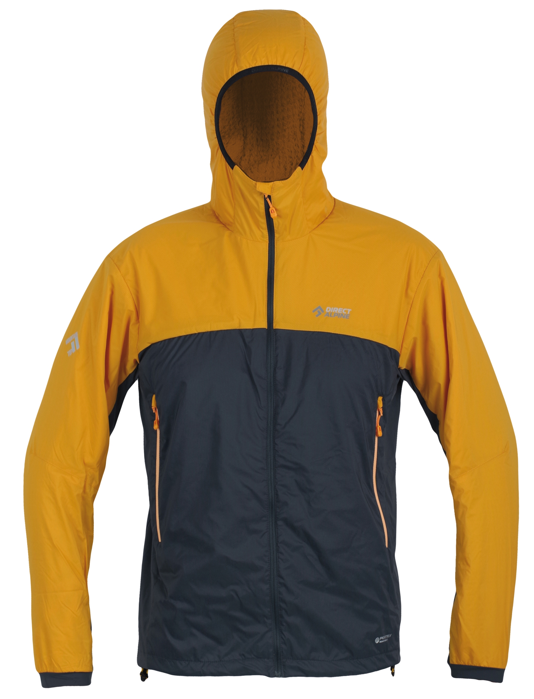 Men's ALPHA JACKET, with an outer shell made of extremely lightweight Pertex Quantum Air, complemented by breathable stretch material on the sides and sleeves. Modern elastic, highly breathable Alpha-Polartec insulation, without lining to reduce weight. The anatomical cut combined with functional material makes it a great backup insulating jacket, especially suited for aerobic activities. Thanks to excellent wind resistance, it provides protection in adverse weather conditions, minimizing heat loss. A breathable, comfortable jacket – the clear choice for mountaineering, ski mountaineering, as well as relaxed trips and any outdoor activities.