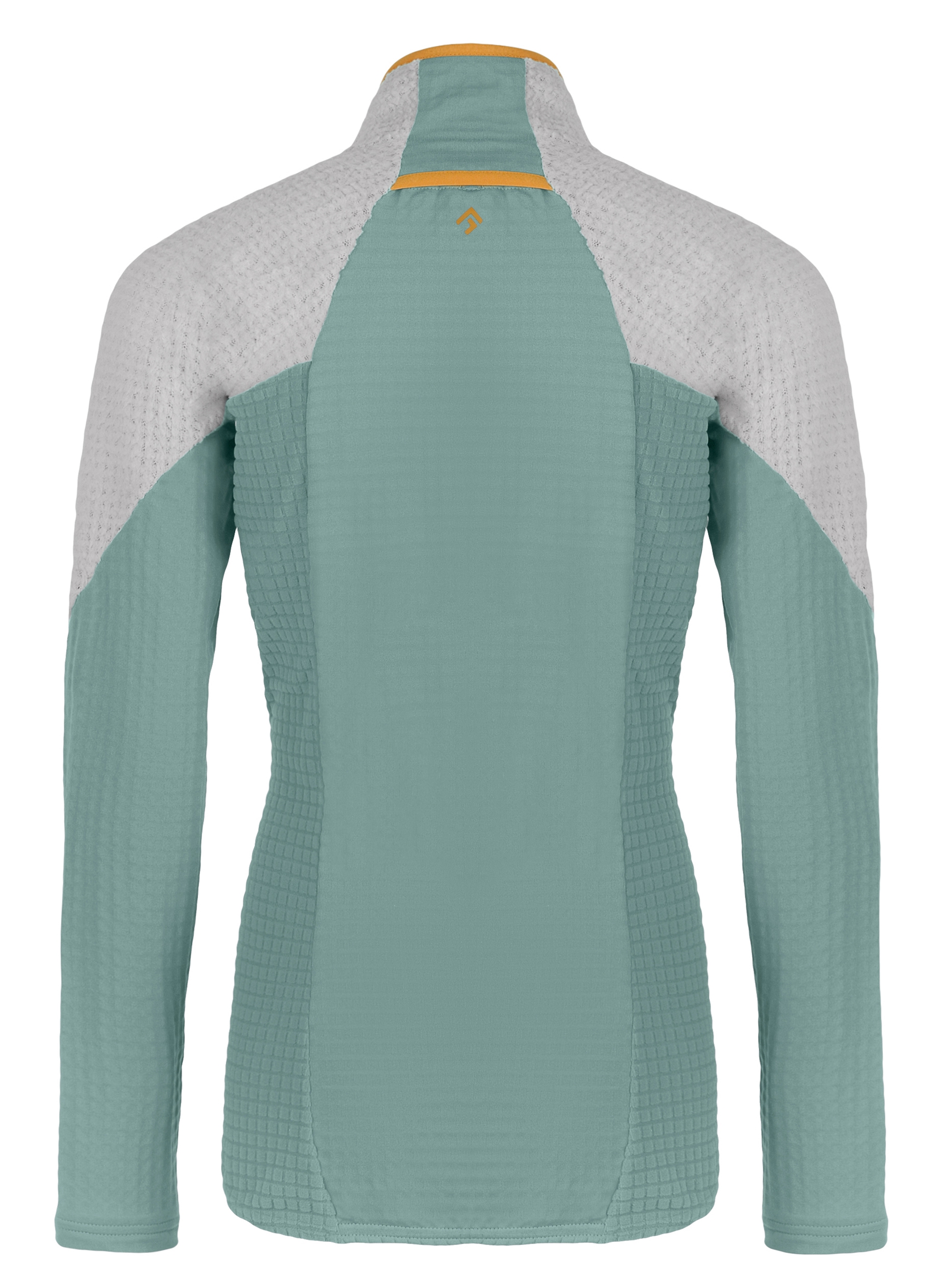 The key design feature of this outdoor sweater is the main zipper with a placket and neck protection. This ensures you stay warm and comfortable, even when the weather isn’t ideal. The decorative element on the back serves as a loop that allows you to attach the sweater to your backpack.