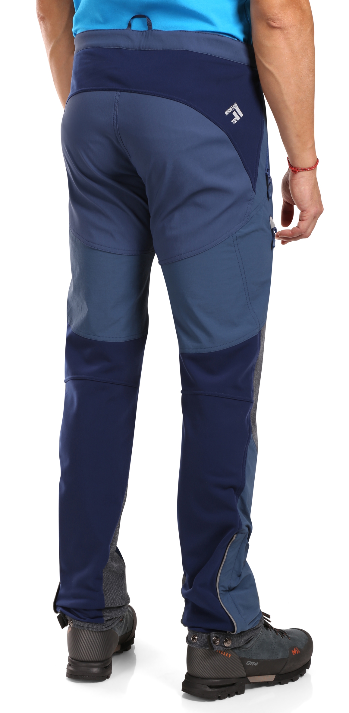 Together with other technical elements such as reverse zippers for easier access when wearing a climbing harness, a double-slider zipper on the fly for the same reason, a comfortable waistband with circumference adjustment, side gussets on the legs with a covered zipper to allow pulling over ski boots, and finally, a hook on an elastic cord to secure the pant legs to boots, these pants are a go-to choice for those who do not want a no- compromise solution for their outdoor activities.