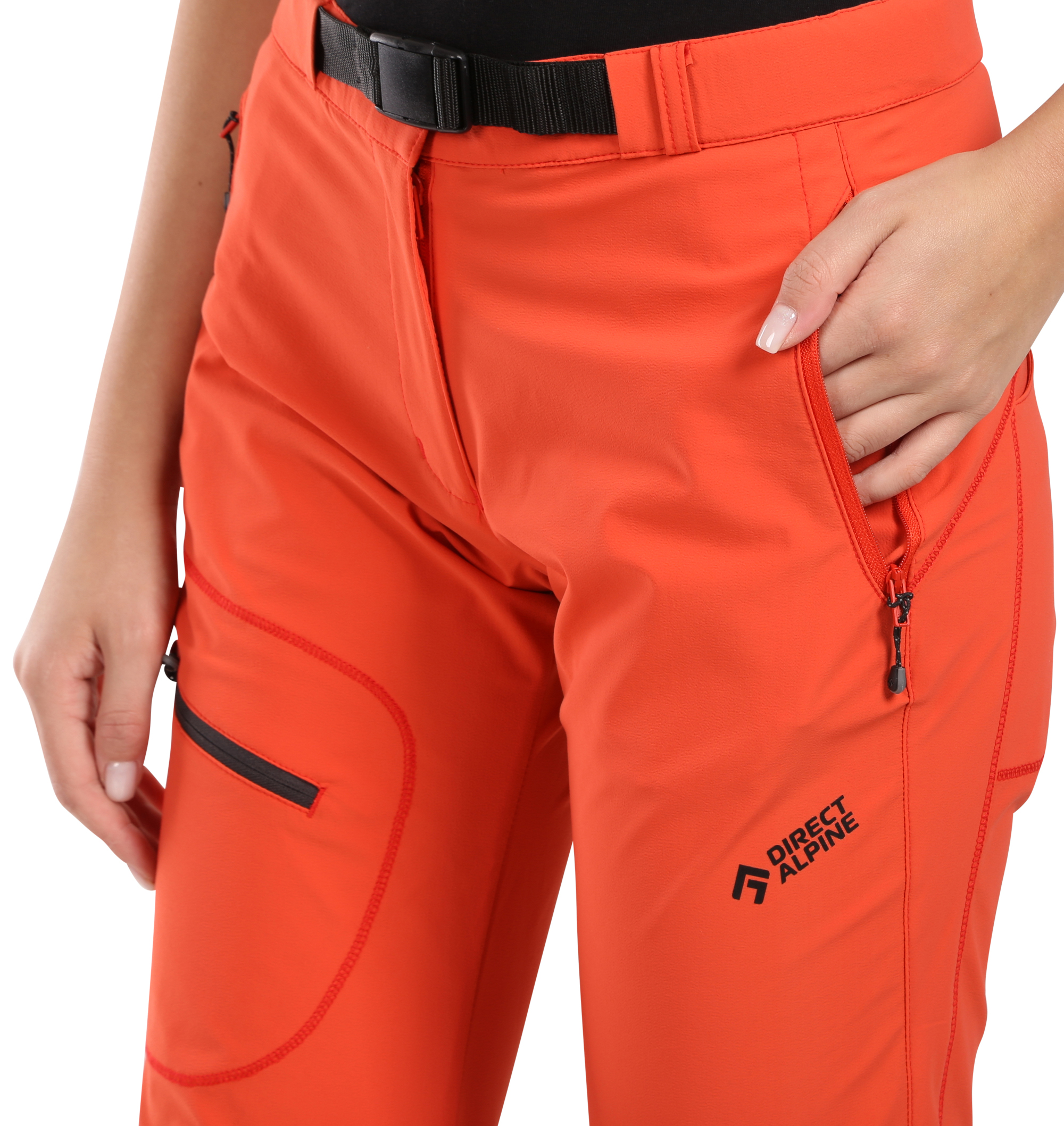 CRUISE LADY outdoor pants are equipped with practical details that you will appreciate during everyday wear and demanding activities. The reinforced waist with an adjustable belt and buckle provides a secure and comfortable fit, while two front pockets and one zipped side pocket offer ample storage space.