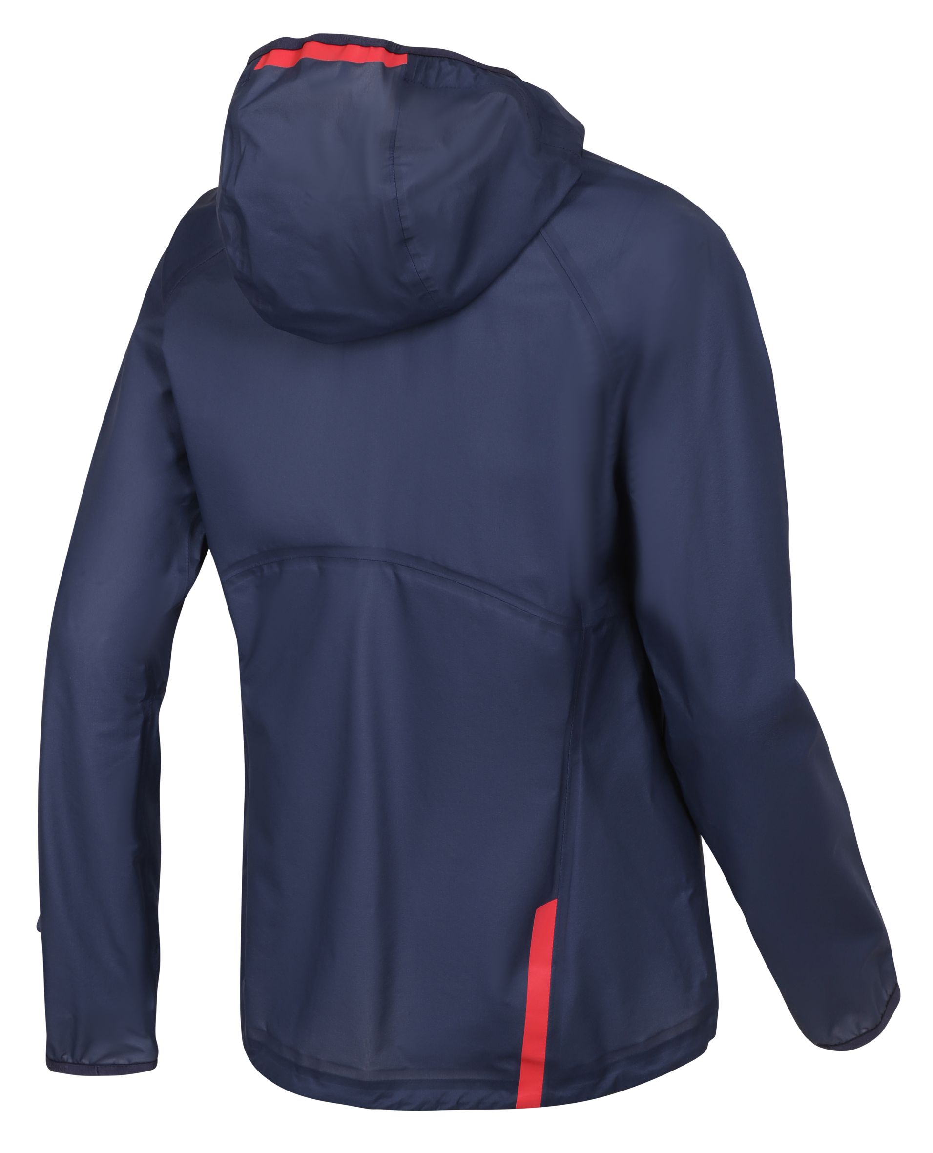 - Anatomical hood with peak, into which the jacket can be easily packed.