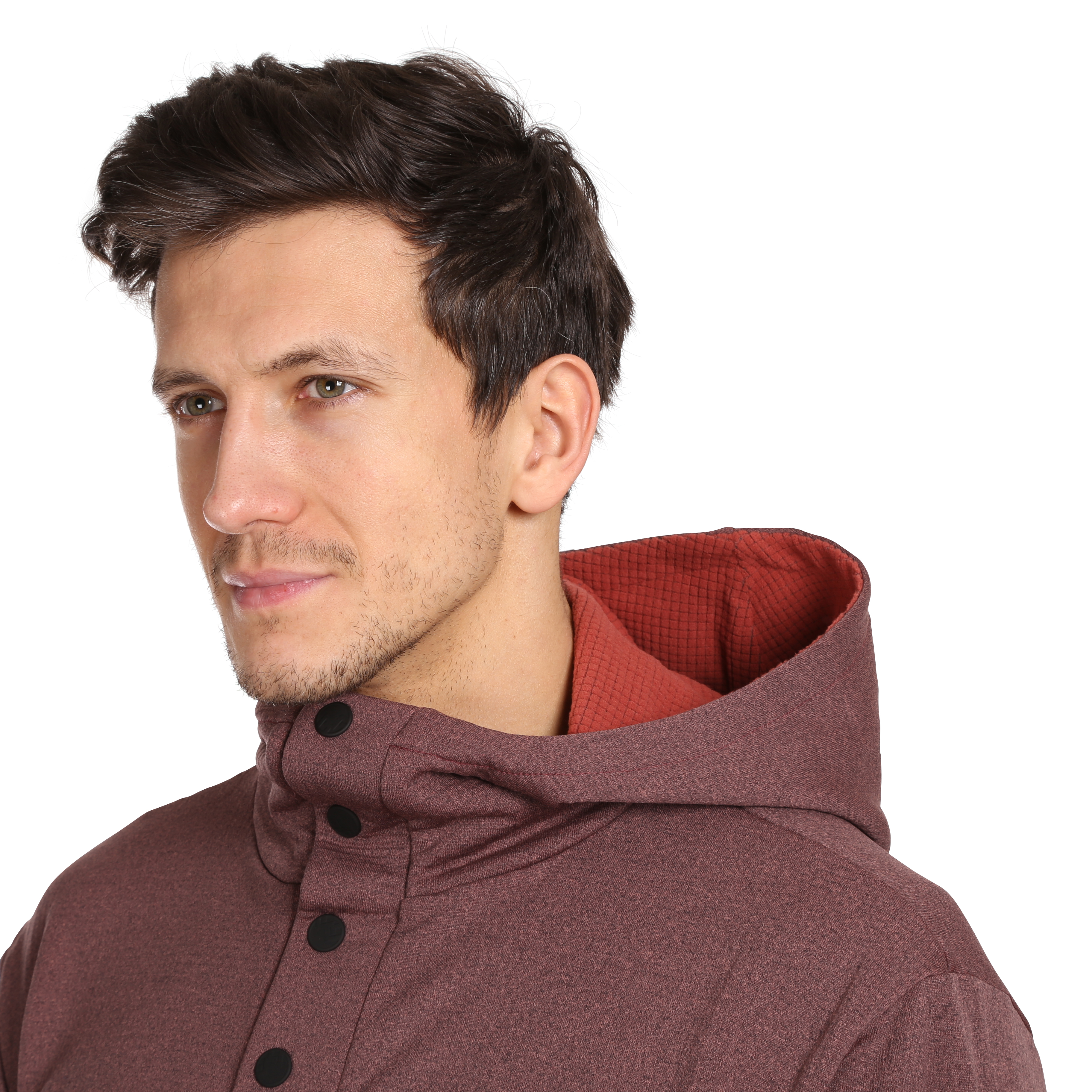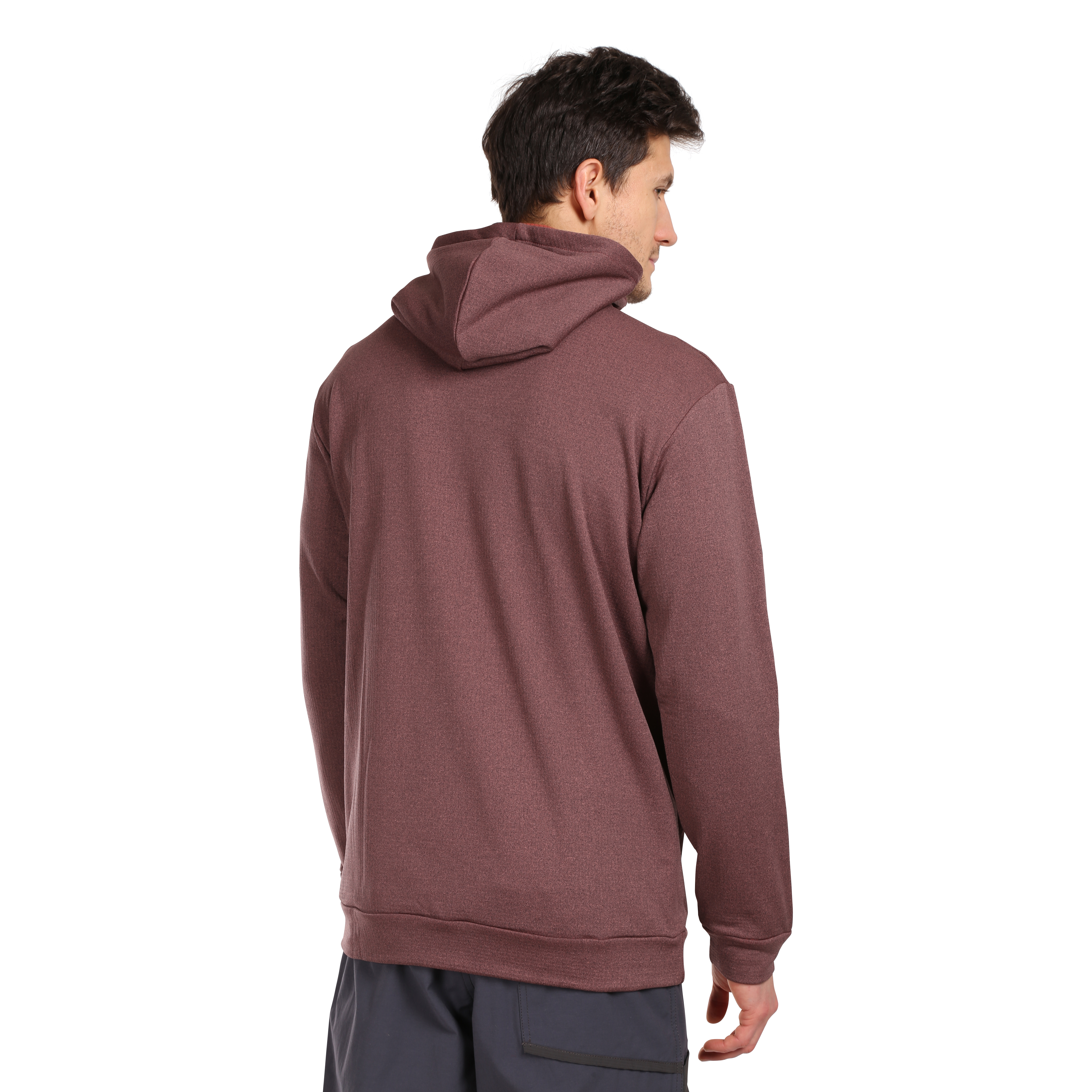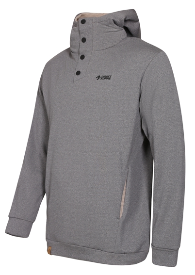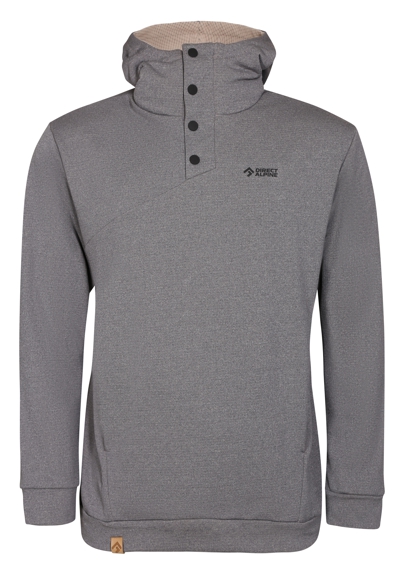 Functional leisure hoodie with a large front pocket, designed for everyday wear but also serves as a second functional layer. Tastefully complemented with stylish, high, anatomically-shaped collar.