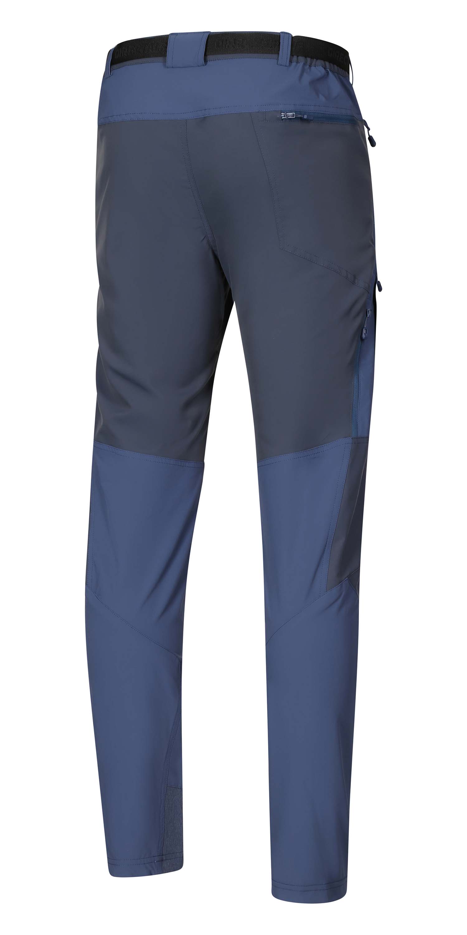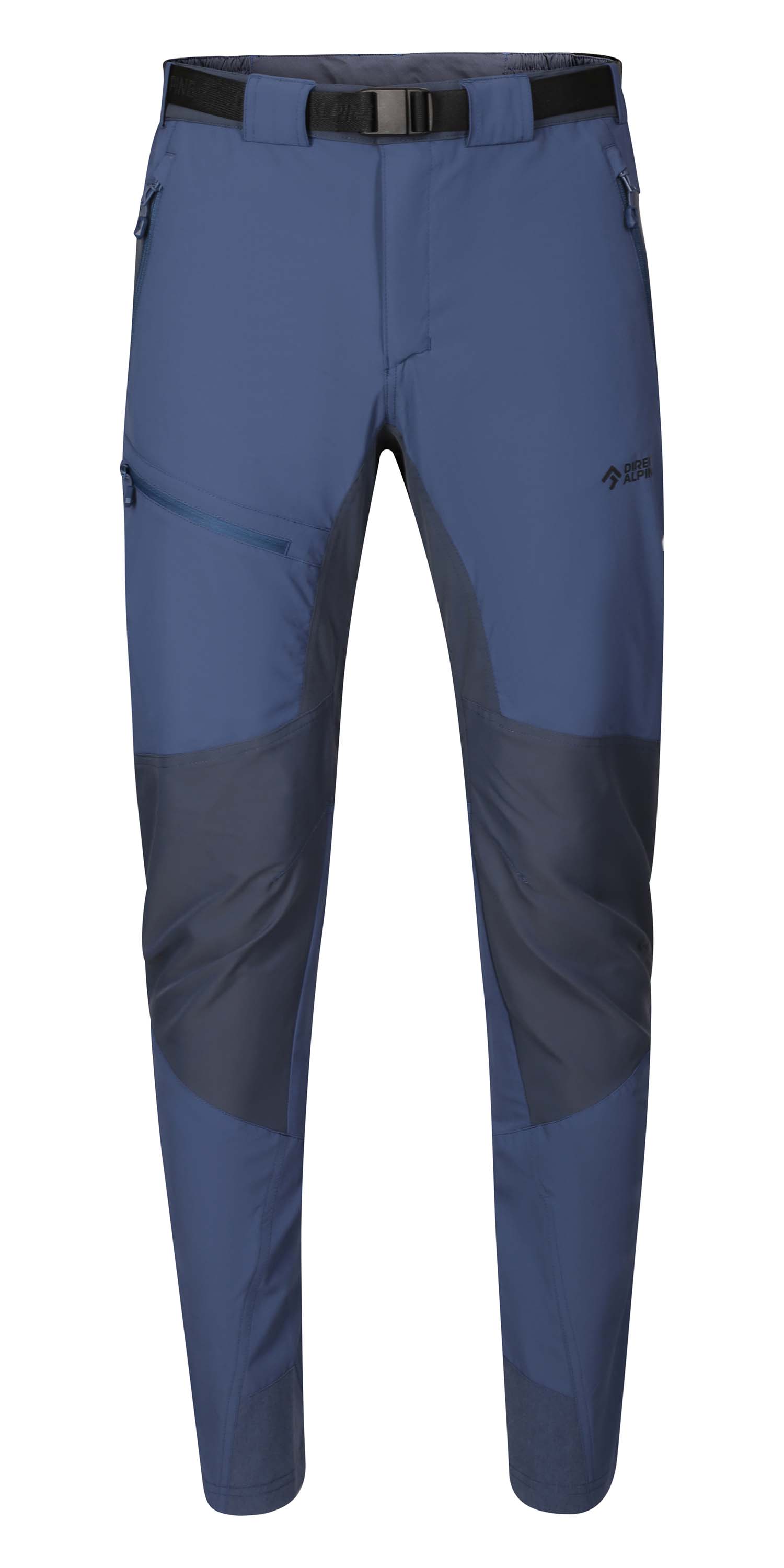 The cut has been designed with the placement of a climbing harness or backpack hip belt in mind. For this reason, the pocket zipper pullers are positioned in reverse to ensure easy accessibility.