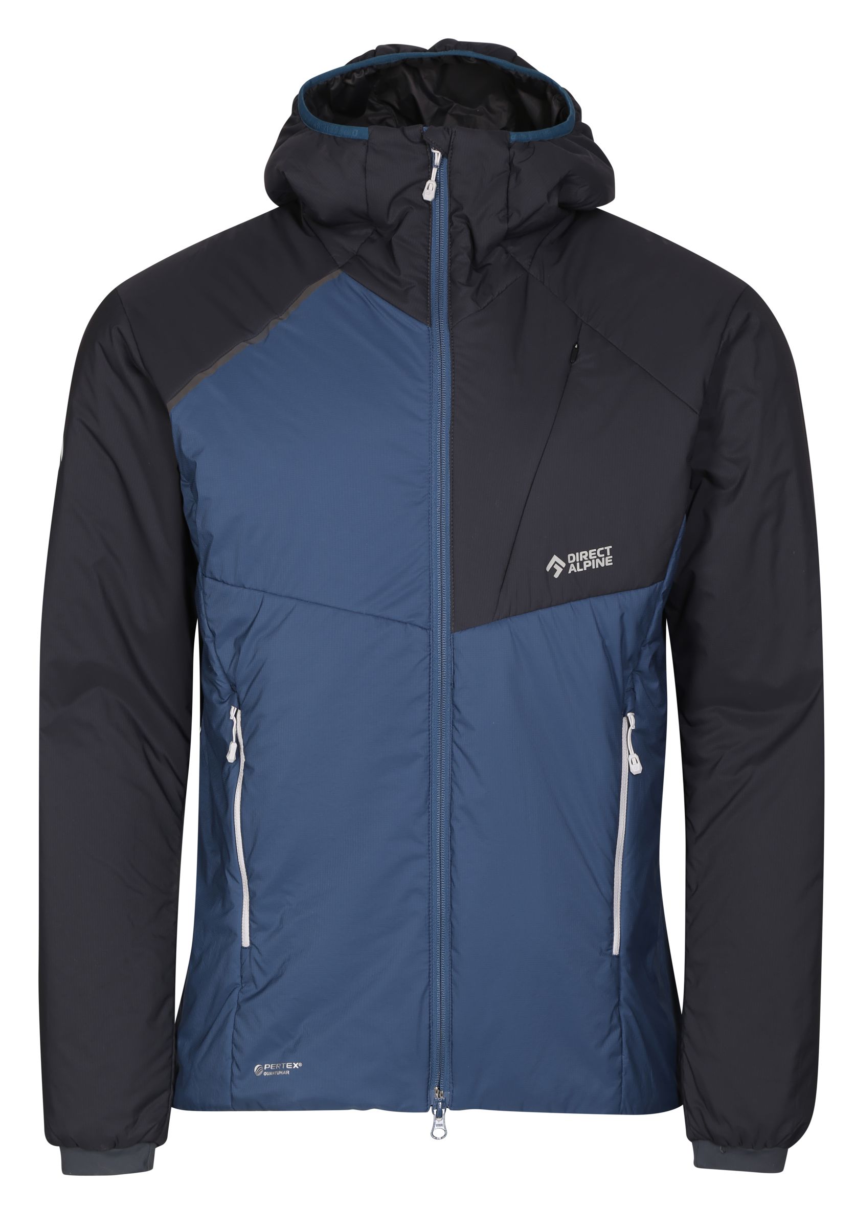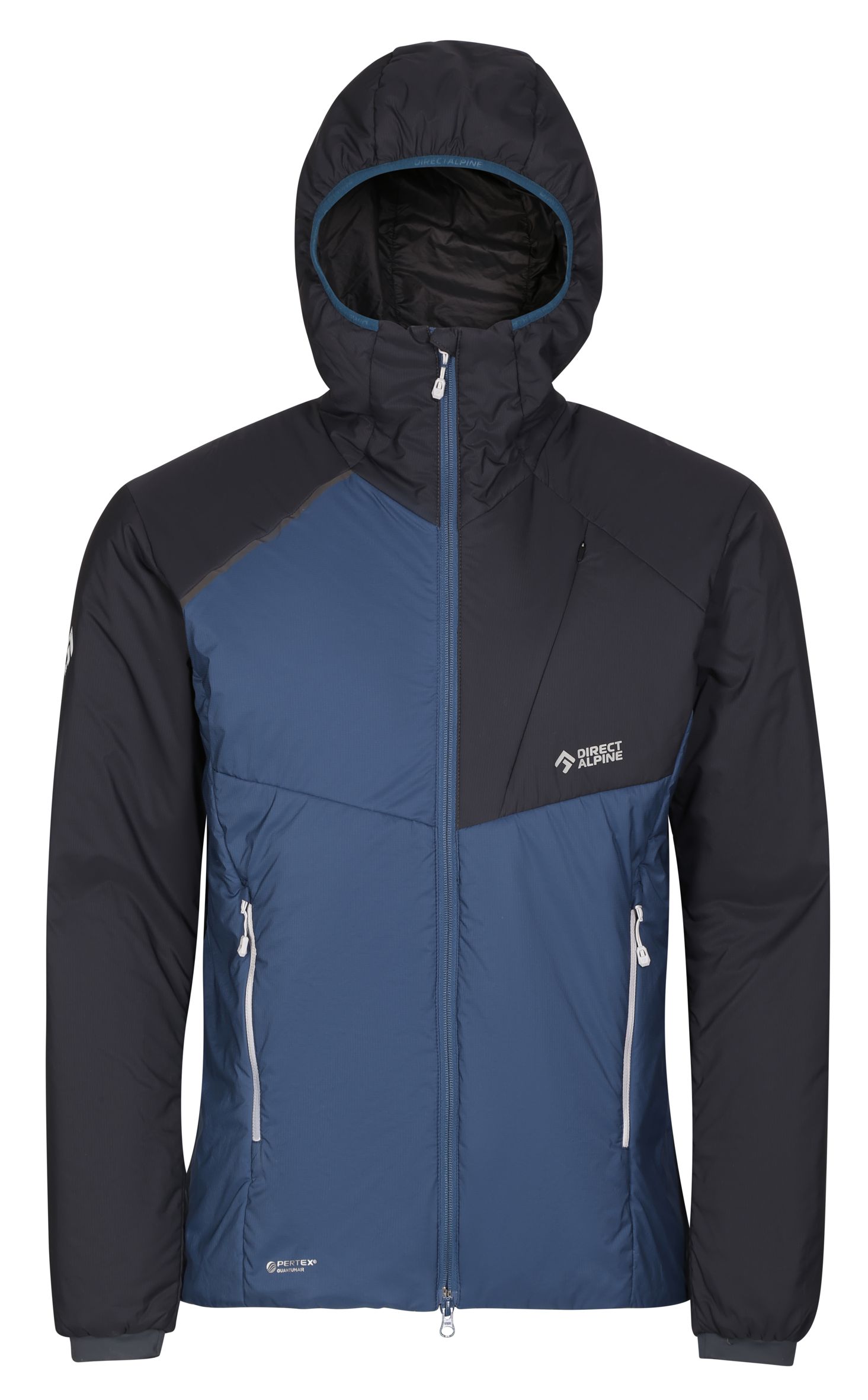 Insulation: 80 % Duck down, 20 % Polyester (Sorona®) (filling) + 100 % Polyester (scrim) - Thindown® + Sorona® filling, 50 g/m² + 100 % Polyester - PrimaLoft® Silver, 60 g/m² (hood)