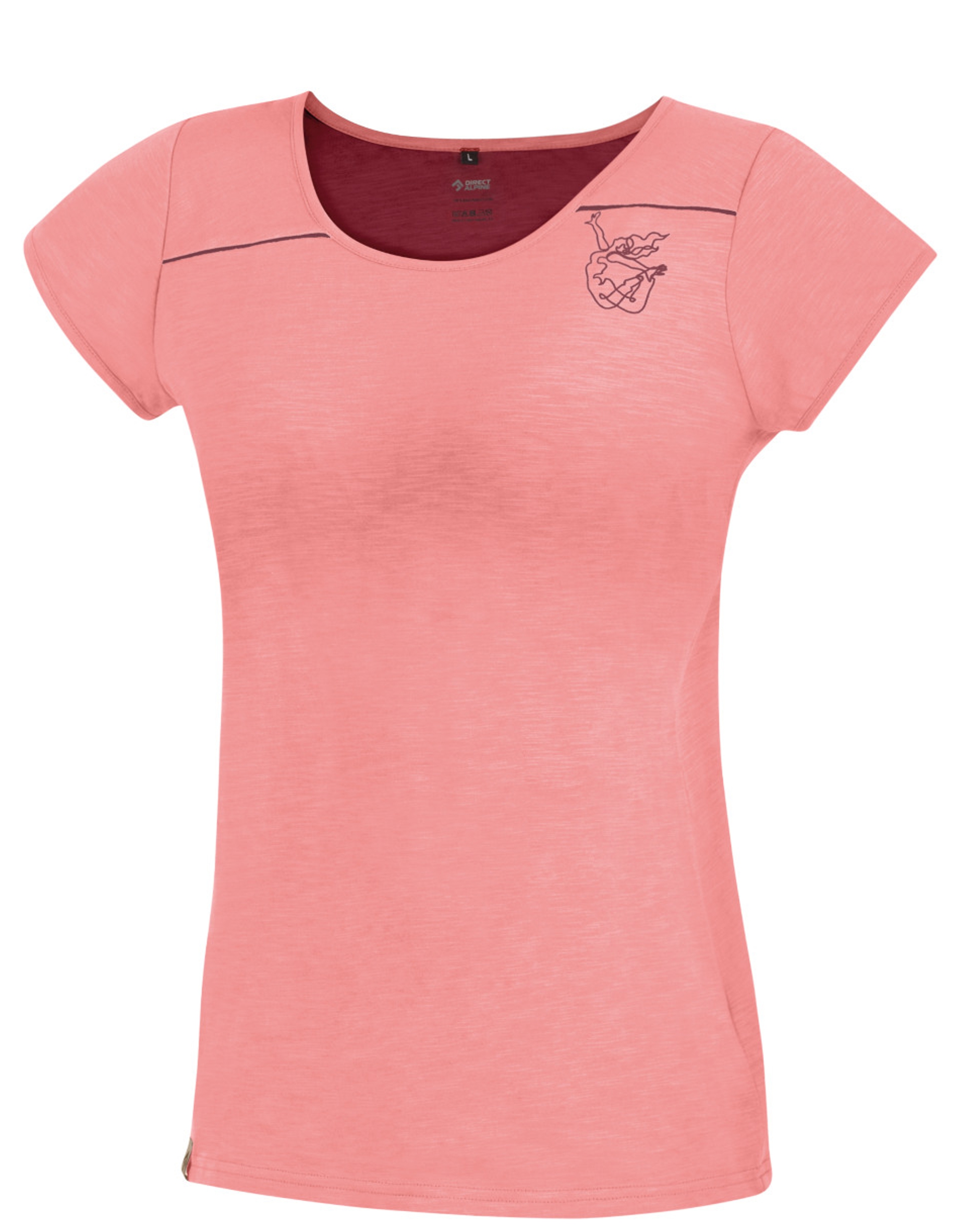 Women's t-shirt made of pleasantly light material that offers unrestricted freedom of movement for outdoor and indoor activities. A simple anatomical cut on proven cotton knit with effective highlights and subtle print easily combines with other models from our collection. The double yoke and short sleeves increase the wearer's comfort when hiking with a backpack.
